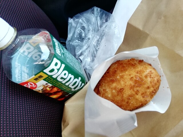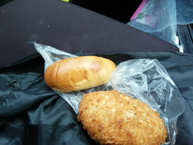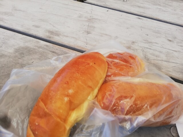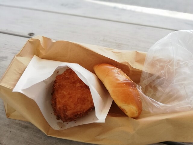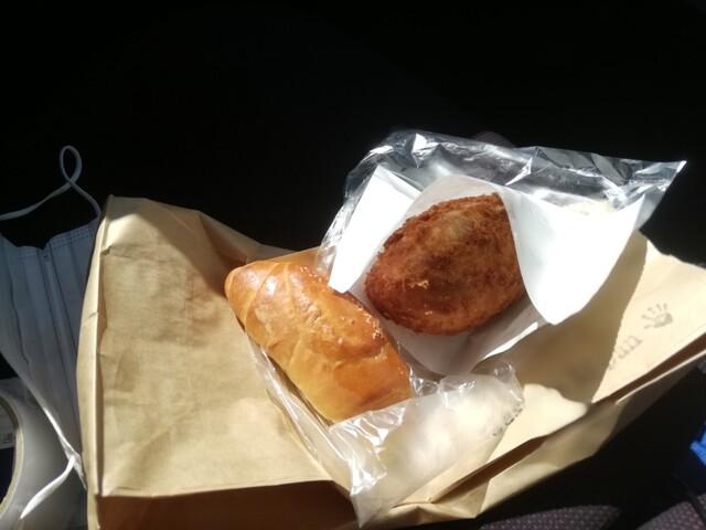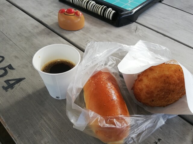 書いてないのもあるので30回の訪問は優に越えてますね(>_<)95%以上がカレーパンと塩パンっす♪ここのカレーパンと塩パン絶対旨いけぇ(  ̄▽ ̄)逆に他のを頼まない自分が正解だと思う位wいつもはカレーパンと塩パンの2つを購入するのですが今日はカレーパン2つと塩パンを購入したバイ♪いつものお姉さんによそってもらって他愛ない会話して頑張ってね♪と挨拶して表のテラスで熱々カレーパンと塩パンをいただきました