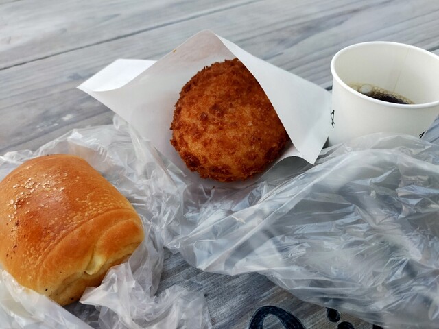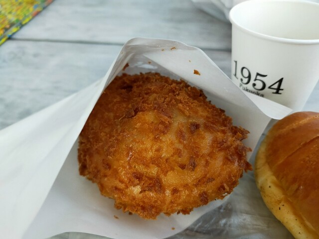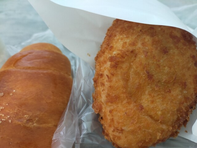 いつもの様にいつもの店に❢店内着くとカレーパンが無いではないですかΣ(゚Д゚)どのくらいかかる?と聞くと20分位かかるとの事 揚げたて熱々カレーパンが食べれるなら20分位待ちましょう(●´ω`●)食べログの編集しながら熱々のコーシ〜と塩パン食べて表で待機バイ( ̄ー ̄)ニヤリ 丁度20分で揚げたて熱々カレーパンとご対面 レジに行くとカレーパン待ちの人多いΣ(゚Д゚)って位ほとんどの人がカレーパン待ちΣ(゚Д゚)お会計は先に済ませていたから受け取るだけ♪いつもの女性がカレーパンかね?って 多分、他の人のカレーパンを(しかも紙袋に入れて用意してるやつ)をはぁ〜いお待たせ♪って言っていただきましたよ( ̄ー ̄)ニヤリ 自分、紙袋いらないってのはその女性が1番わかってるはずなので絶対他のお客さんのやぁ~( ̄ー ̄)ニヤリと思いながら熱々カレーパンをいただきましたよ 中のルーがめちゃめちゃ熱々で火傷しそうになったバイ 今日も美味しい塩パンとカレーパンご馳走でちた♪