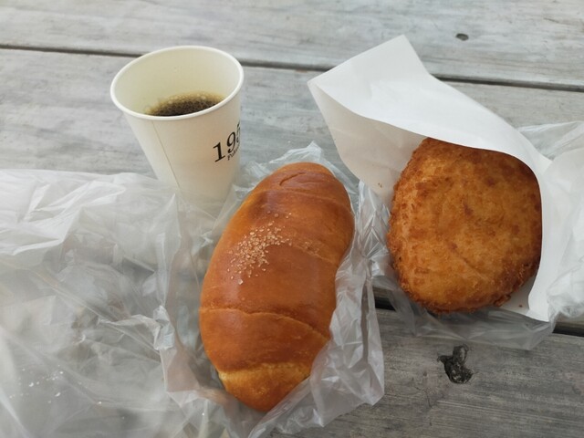 今日は休みでいつもの1954さんへ 今日は塩パン売り切れててなかったと〜(●`ε´●)仕方ないからカレーパン2つバイ( ̄ー ̄)ニヤリ店長さんに取っていただきましたよ レジではいつもの女性がカレーパン2つって珍しいやんΣ(゚Д゚)って(笑) 塩パンなかったとよ〜(T_T)と会話しながら、ちょっと待っとき とコーシ〜並々バージョン作ってくれました(●´ω`●)有り難いですね☆パンの外側をスズメさんに養殖しながらいつもの美味しいカレーパンいただきましたよ!