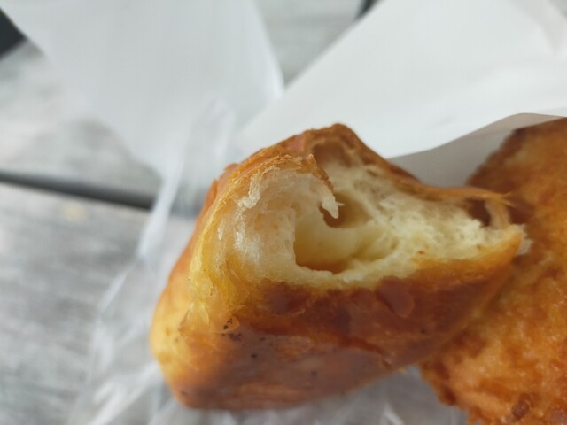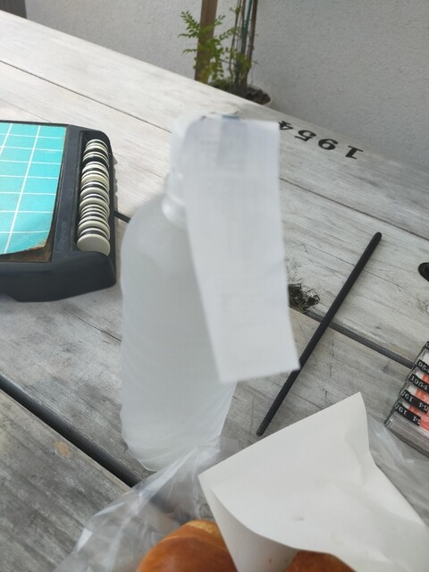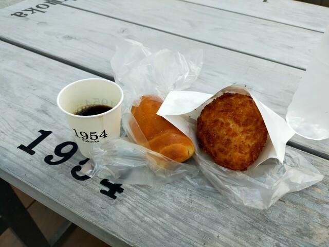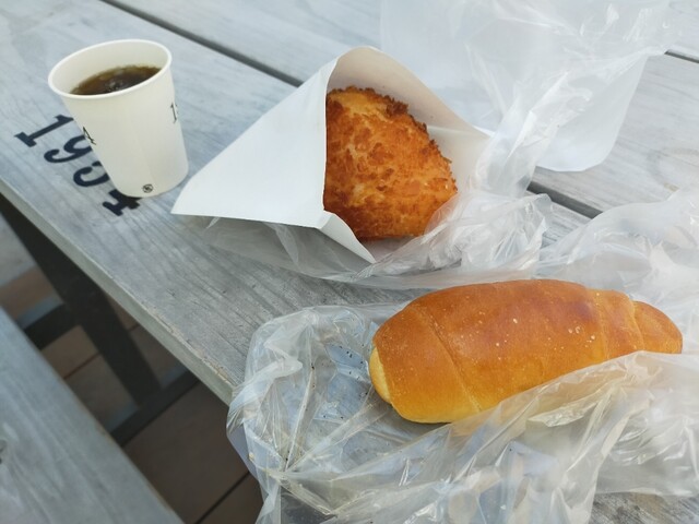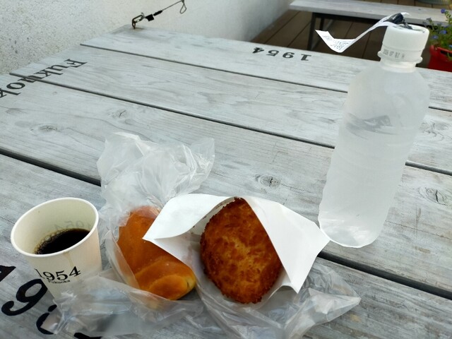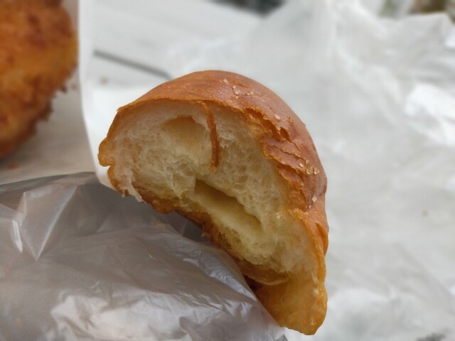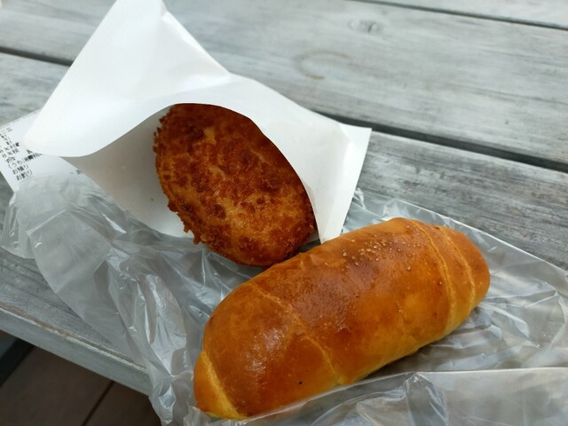 今日も歯医者終わっていつものパン屋さんに 揚げ物コーナーに行くと、丁度目の前で揚がったばかりのカレーパンとご対面( ̄ー ̄)ニヤリ自分にとって何よりの贅沢☆ 表にはカレーパンいっぱい並んでいるのに、じんちゃん。のいつものワガママで揚げたて超熱々のカレーパンを包んでくれます♪ 塩パンもいつものお兄ちゃんが取ってくれましたよ♪ホントにありがたいですね レジでお会計の時は、いつもお水のフタを軽く開けていただいてます 今日はお姉ちゃまやったけ、何も言わなくてもフタを開けてくれますよ♪表のいつもの席で揚げたて超熱々のカレーパンと塩パンをいただきましたよ( ̄ー ̄)ニヤリ 塩パンは安定の旨さ カレーパンは揚げたて超熱々なので中のルーで火傷しそうになりながら美味しくいただきましたよ(●´ω`●)