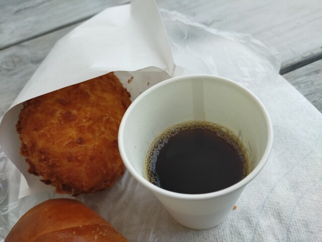 今週3回目のお休みでち( ̄ー ̄)ニヤリ する事なんか一切無い(笑) 病院帰りにいつものパン屋さんに行ってきたよぉ(●´ω`●)店内入るといつもの女性がカレーパンコーナーの前で作業されてました 裏にある揚げたて熱々のカレーパンと焼き立ての塩パンを取ってもらって、そのままレジでお会計 コーシ〜をいただく時に、レイコ〜にしてもらいまちた♪手には薬とパンを持っていたので、いつもの席迄レイコ〜を運んていただきましたよ(●´ω`●)いっつもあんがとねぇ~♪今日はカレーパンも塩パンも熱々だったからめっちゃウマウマっす(-ω☆)キラリ