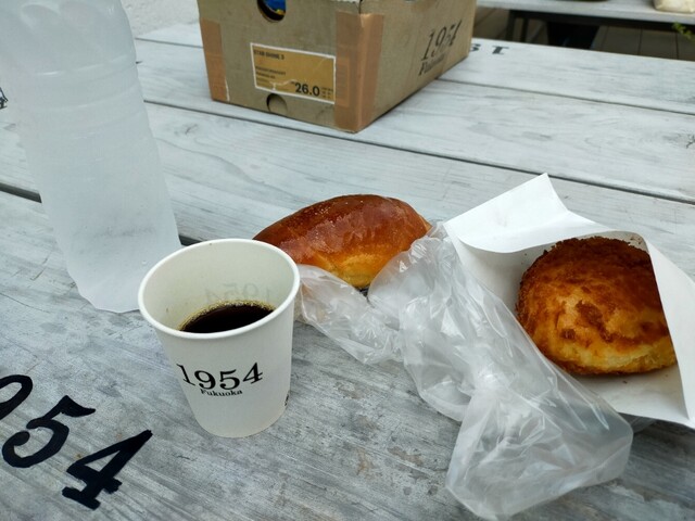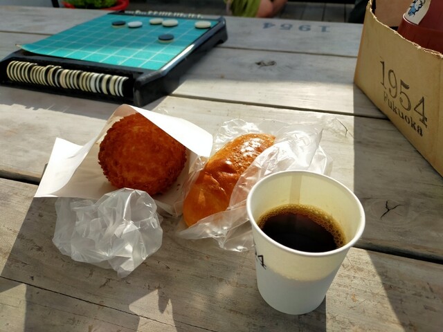 台風が来た?時は行けなかったから1週間ぶりの訪問バイ♪ 今日もある〜?って聞いたら裏から温かいカレーパンを出してくれましたよ( ̄ー ̄)ニヤリ塩パンのとこに行くと焼き立ての塩パンを持って待っててくれるではないですかΣ(゚Д゚)めっちゃありがたいす(●´ω`●)お会計していつもの女性と会話して レイコ〜作っていただきましたよ(●´ω`●)いつも感謝です いつもの席で熱々カレーパンと熱々塩パンいただきましたよ バリ美味いけんね( ̄ー ̄)ニヤリ