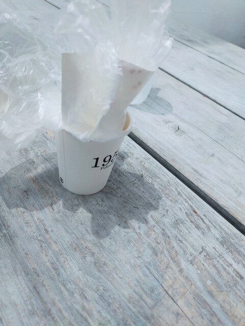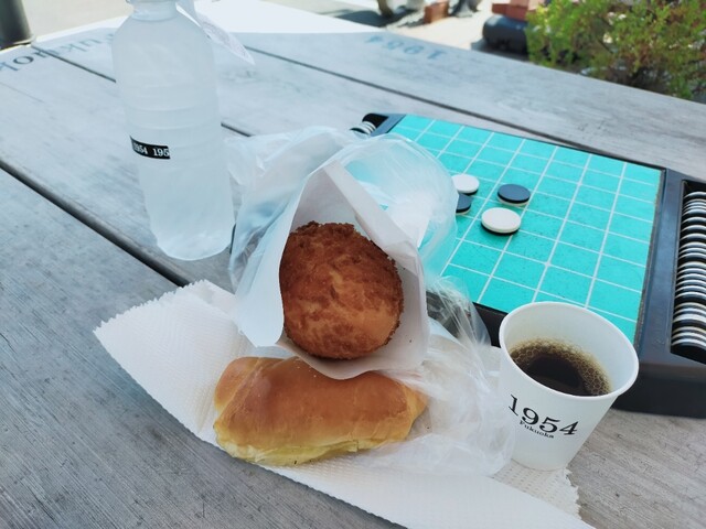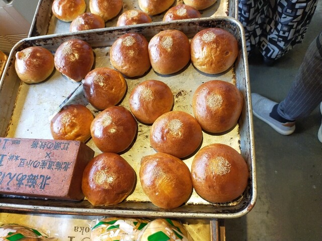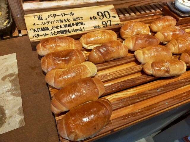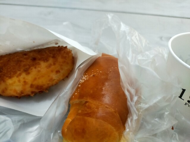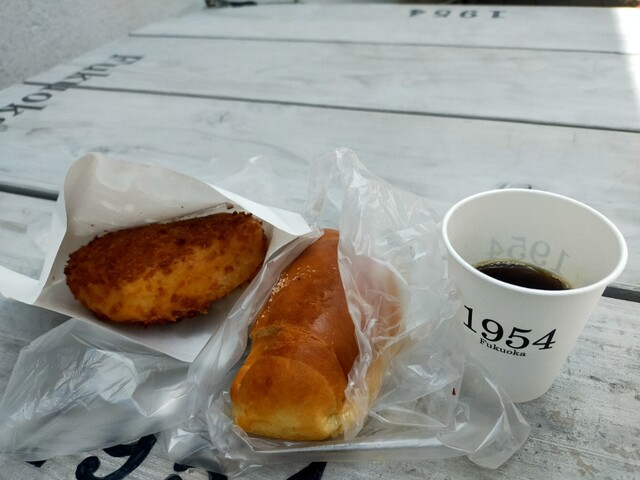仕事帰りに寄りました! じんちゃん。セット求めて行ったのにカレーパン売り切れてたぁ(泣)(/_;)シクシク やっぱりカレーパン人気やね♪だから、今日は塩パン2ついただきましたよ(●´ω`●)暑かったからお水買おうとしたら冷蔵ケース水もジュースも売り切れΣ(゚Д゚)空っぽでちた(T_T)いつもの席で無料のコーシ〜と一緒にいただきましたよ(●´ω`●)美味かったバイ(^o^)レジでは、袋いらないよって言わなくても10円引き(袋代)していただいてます( ̄ー ̄)ニヤリいつも10円、ありがたいお店っすねぇ~♪ この店の何が好き?って聞かれたら、パンも好きやけど、従業員さん達の対応が1番好きバイ( ̄ー ̄)ニヤリ