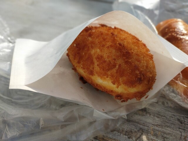11日ぶりの訪問っす☆ 自分にしてみれば、11日ぶりなんて考えられないす(>ω<) 久しぶりのカレーパンと塩パン やっぱり美味かね~!カレーパンはいつもの様に裏にあるやつ( ̄ー ̄)ニヤリ揚げて数分しか経ってない温かいカレーパンす 熱々で表面サクサク カレールーは熱々っす バリ美味か(●´ω`●) 塩パンもいつもの様にジュワリっす こちらは店長さんにわざわざ取っていただきましたよ♪いつもありがたいお店ですよね~ 雨が降ってたからお客さんは少なく、レジは混雑してませんでしたよ いつもの美人のお姉さんと他愛もない会話してコーシ〜もろて退店す