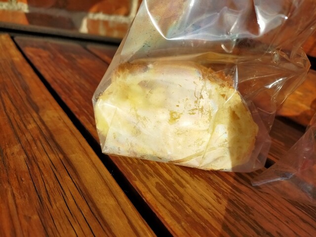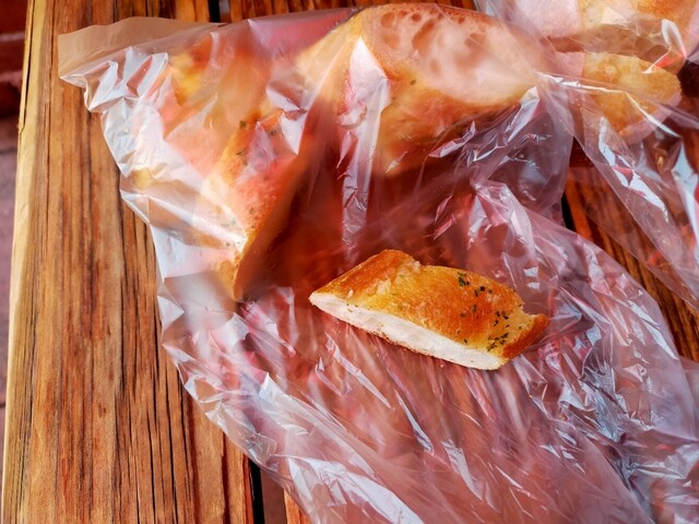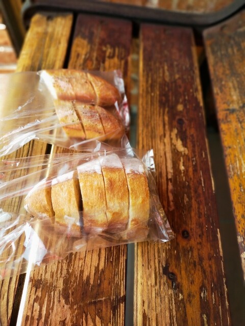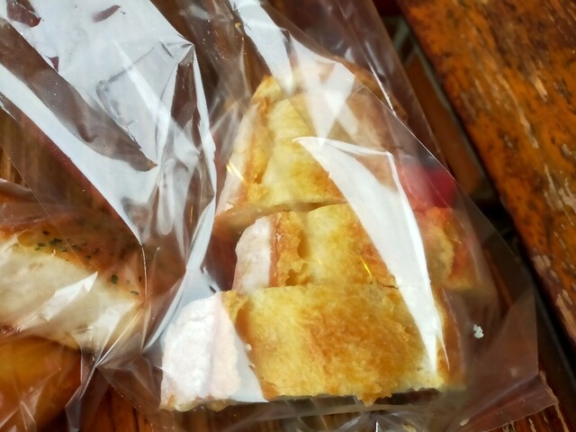 焼き立てのガーリックフランスとチーズフランスを求めて( ̄ー ̄)ニヤリ 今年最後のハード系のパン いつもワガママを聞いてくださるお店 今日の焼き上がりは9時半クリスマスだから忙しいとの事 それでも最後に焼き立てが食べたくて9時半過ぎに再訪バイ( ̄ー ̄)ニヤリ焼き立てのガーリックフランスとチーズフランス中はシットリ 外はパリパリでバリ美味い♪今日もワガママ言ってパンをカットしてもらいましたよ(●´ω`●)今年最後になるかもしれないから今年もありがとうございましたm(_ _)mと挨拶して、退店す 店の外でパリパリのガーリックフランス絶妙な塩味が食欲そそりますバイ( ̄ー ̄)ニヤリ旨かぁ〜〜〜( ̄ー ̄)ニヤリ