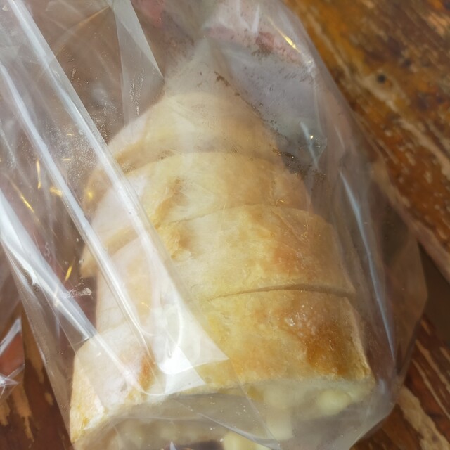焼き立てを狙って9時にキラリさんへ訪問バイ♪丁度焼き立てのチーズパンとガーリックフランスがあるバイ レジの方がお手伝いお願いしますと声をかけてくれると中から出てきてくれました いつもの様にチーズフランスとガーリックフランスを取ってもらってカットまでしてくれますよ☆ 焼き立てバリ旨かね〜( ̄ー ̄)ニヤリ 最高す♪本当にいつも気に掛けてくれて、ありがたいパン屋さんです 今週から値上げって聞いてたけど 袋に入れてくれた後、少しずつ値上げになったとよって申し訳なさそうに言われてたから聞いてますよ!仕方ないっすもんね!と伝えて退店す やっぱここのフランスパン最高す♪