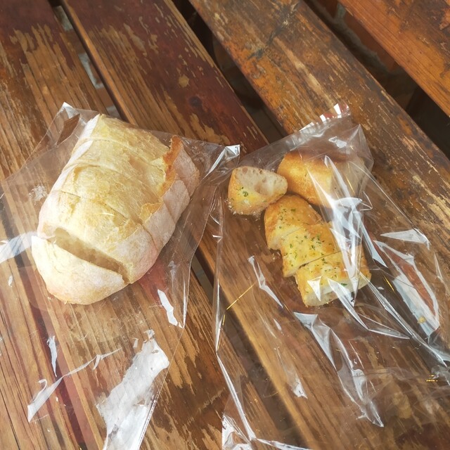 石窯パン工房キラリさんに行って来たバイ( ̄ー ̄)ニヤリ こちらは店内入ると何も言わなくてもガーリックフランスとチーズフランスを用意してくれるから助かるとよ♪ しかも食べやすい様にカットまでしてくれるから食べやすいバイ♪しかもこの2つが美味いとよ☆