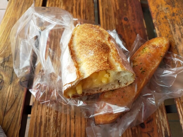 こちらのお店ではハード系のパンをいつも購入 するとバイ♪ガーリックフランスとチーズフランス 今日のチーズフランス焼きたてでホカホカ 外はカリカリ中はふんわりバリ美味Σ(゚Д゚)