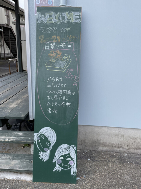 ❥ 日替わり弁当は、だし巻き卵、唐揚げが入って和風パスタ、磯辺揚げ、ひじきの煮物でした。ワンコインは、いいですね❤️