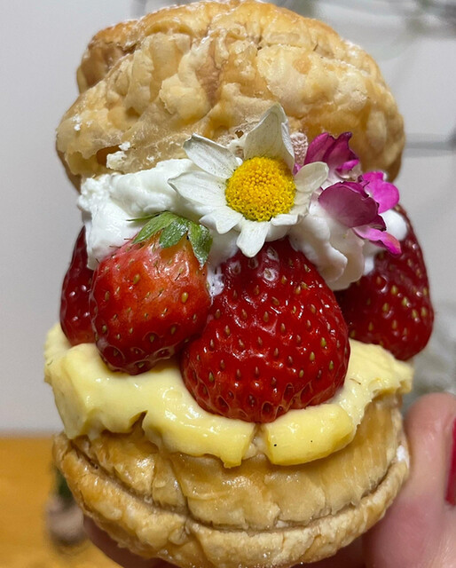 ❥ 鯛クッキーの下のミルフィーユは、サクサクっで美味しい。カスタードの甘さがちょうどいいよ