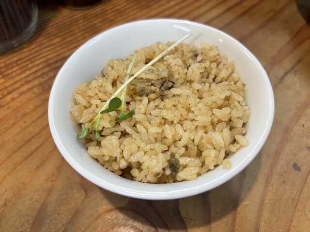 念願の貝ガラ屋。淵野辺に行く用事が無さすぎて(失礼)全然行けてなかったが、この度めでたく立ち寄ることができた。3種類の牡蠣を使ったスープはもはやポタージュのよう。すくった瞬間から立ち昇る牡蠣の香りでもう百点なのだが、一口飲むとそこはもう牡蠣の楽園が目の前に広がり、牡蠣の姿をした天使が微笑みかけてくれるよう。菅野製麺の中太ちぢれ麺は啜ればクリーミーなスープとよく絡んで、めちゃくちゃうまい。長めのメンマが2本入っているのもポイント高い。かいわれとネギが清涼感を加えていて、全体のバランスを整えている。店員に声をかけることでおろしにんにくとレモン汁で味変できるが、今回はにんにくをチョイス。これまた味が深まってめちゃくちゃうまい。貝めしはそのまま食べてもだしがきいてうまいのだが、牡蠣スープに漬けるとコクがあってまるで高級リゾットのようである。うますぎて完飲してしまった。遠いし並ぶのだが、もっと早く行っておけば良かった…!