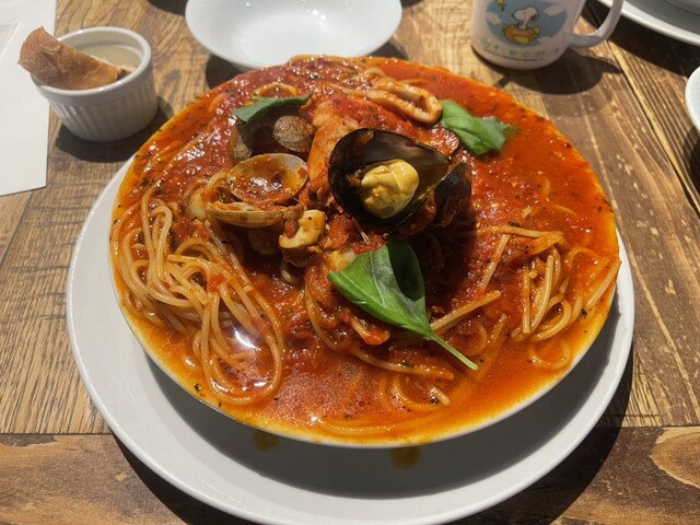 海の幸のトマトパスタ(私)