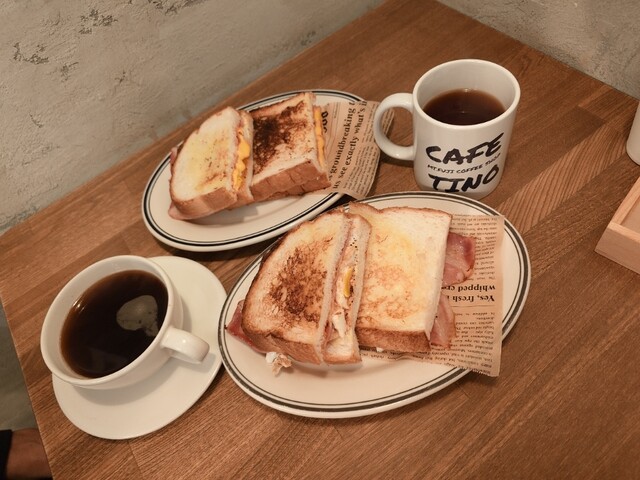 朝早く河口湖のネモフィラを見に行きました。その後モーニングに寄りました。8時半からのモーニング10分前に行きましたが既に1台、時間にはもう3台の車が…入店する時から接客の女性が丁寧で優しくて素敵、とにかく感じが良くて100点。2組づつの席が7席くらいあったかな、だから3名だと2席使うので、すぐ満席。メニューはパンケーキもありましたがホットサンドの気分でしたので、ベーコンチーズエッグ、主人はベーコンエッグ、そして寒かったのでホットのコーヒーとルイボスティー。こんなに混んでて時間かかるかなと思いきや、手際が良い、出来るの早い!少し焦げてるかな…あまり期待しないで食べたら、美味しい!美味しすぎる!こんなに美味しいホットサンドは初めて、主人もそう言ってました。まずパンが美味しいし、ベーコンなどの素材も良いと思います。そしてなんといってもソースが美味しい。オーロラソースのような物と大粒黒胡椒が効いてます。20分程しかいなかったと思いますが外には待ちのお客さんが3組…人気店ですね。本当に美味しかった、ご馳走様でした。