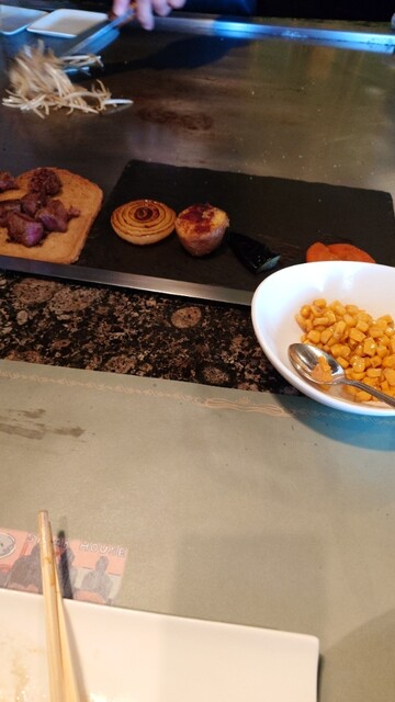 動画で沢山撮ったのを載せられなくて残念。昭和時代には繁盛しただろうなという店構え、螺旋階段を上がって行って物凄い沢山のサインや皇族との写真?なども....少し緊張、ご年配の女性のお出迎え、そこから中に入るとびっくり!何とも広いカウンター席、10人以上は座れる。それ以外に個室がいくつも、そして、大人数での個室も....思った通り昭和のあの時代は凄かったと思う。そこへ、シェフ登場、丁重なご挨拶の後は、親父ギャグ連発(笑)ランチのステーキコース、60gと100gを頼みました。アミューズも白鳥さんが居て見た目も美しく食べても美味しい。サラダも新鮮、野菜も茄子も人参も美味しい!そして玉ねぎも淡路島産....そしてパフォーマンス入りの(笑)ステーキ焼く所がまた凄い、ちゃんと写真撮れるように声をかけてくれる、これも動画で撮ったので炎は無し。デザートのアイスもステーキに合うように作られてるそう。とにかく、シェフがただもんじゃなく楽しい、大笑い。格式高い建物のとギャップ、気楽に食事を楽しめます。