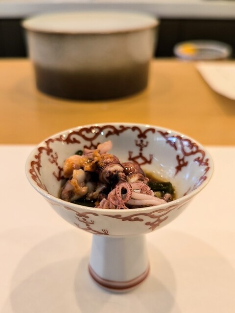 最初のホタルイカと行者ニンニクの組合せから
