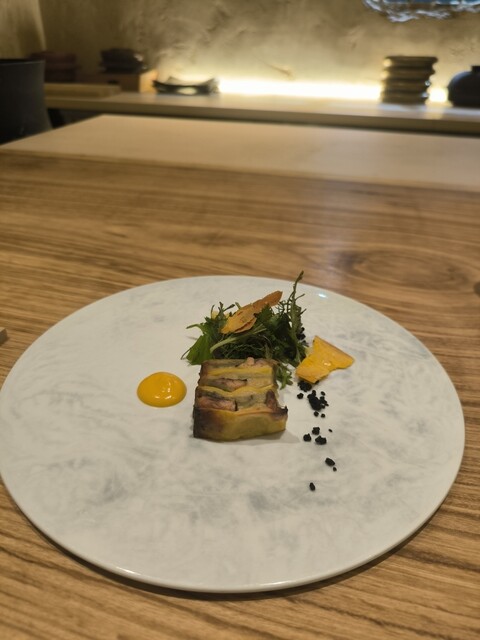 見事な松笠で鱗の食感と身の甘さがやはり美味しい甘鯛。サフランが入ったソースや冬瓜と舞茸との相性がとても良い