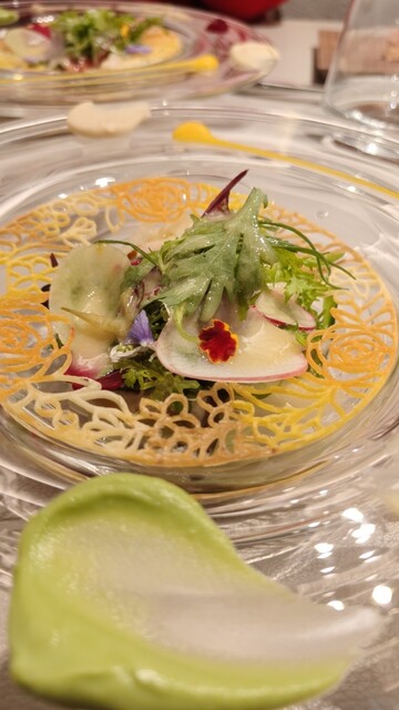 温かいサラダやイシガキダイ、京都もち豚など、季節の食材を活かしたお料理をお気に召していただけたこと、そして最後のスフレやミニャルディーズまでご満足いただけたご様子で大変嬉しく存じます。