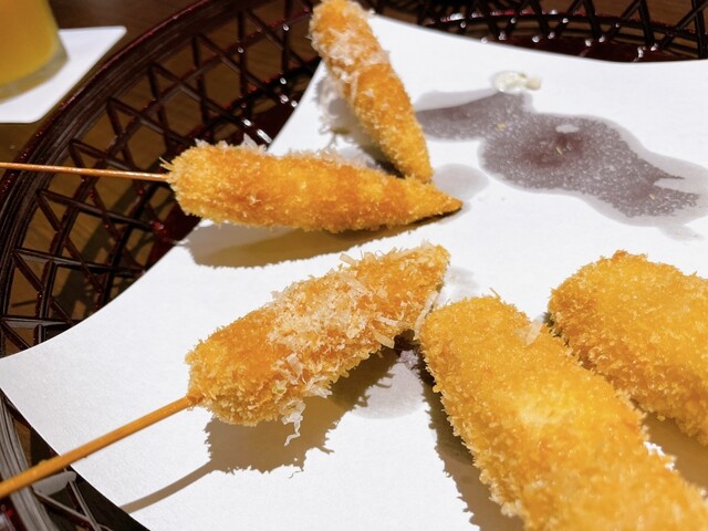 素材の旨みをしっかり味わえるように、薄い衣の串揚げ。
