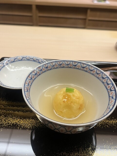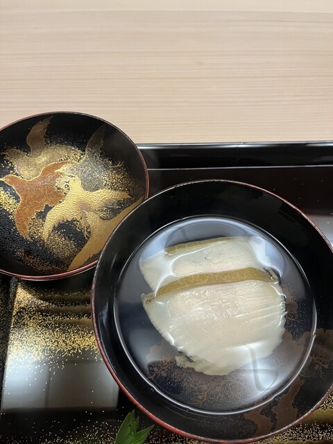鮑と玉子豆腐のお椀、太刀魚のナルト揚げ、新じゃがいもの饅頭は見た目も美しく味わい深く最高でした!
