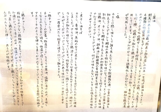 ちなみに、こちらの店、醤油は「さくら井(三鷹)」、塩は「八咫烏(九段下)」、煮干し油そばは「つきひ(亀戸)」が監修したのとことです。