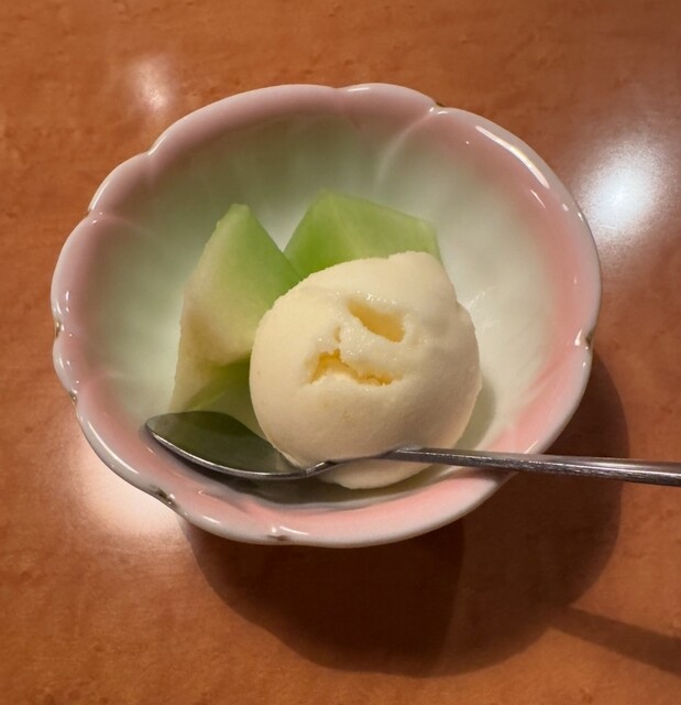 デザートは、柚子シャーベットとメロン。