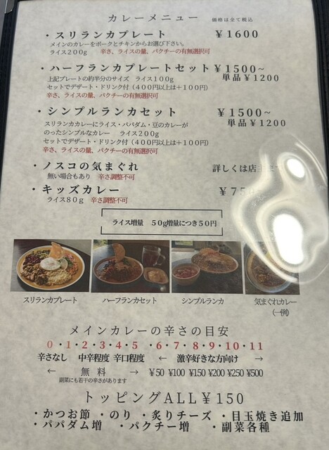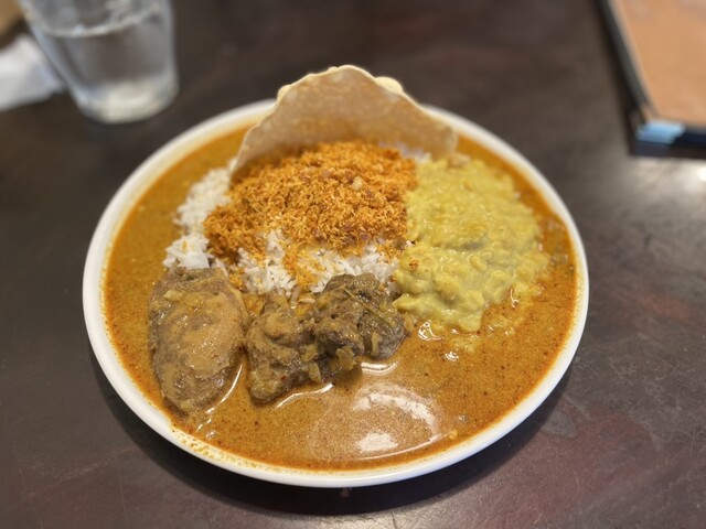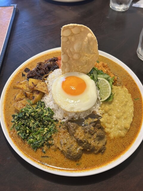 ミールス的に沢山の副菜が乗った「スリランカプレート」が気になったが、ここは評判店のカレーそのものを沢山食べたいという事で「シンプルランカセット」を辛さ5番をオーダー^ ^