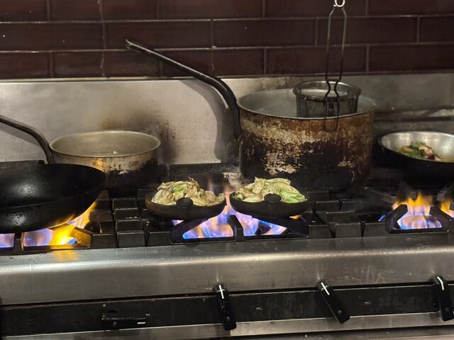 調理場のお兄さんたちはてきぱき手際よく火を操っていました。とてもおしゃれな場所なのに、職人気質。好感が持てる素敵なお店です。カウンターが長く開放的なのでデートにお勧めです!