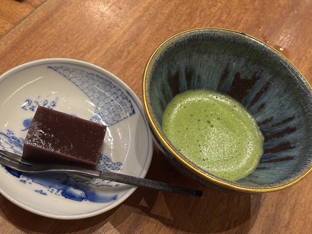 甘さ控えめの塩羊羹と抹茶の組み合わせで、静かに余韻を楽しみながら締めくくれます。