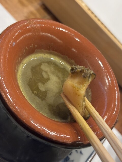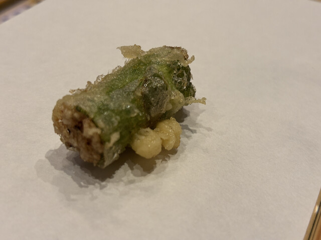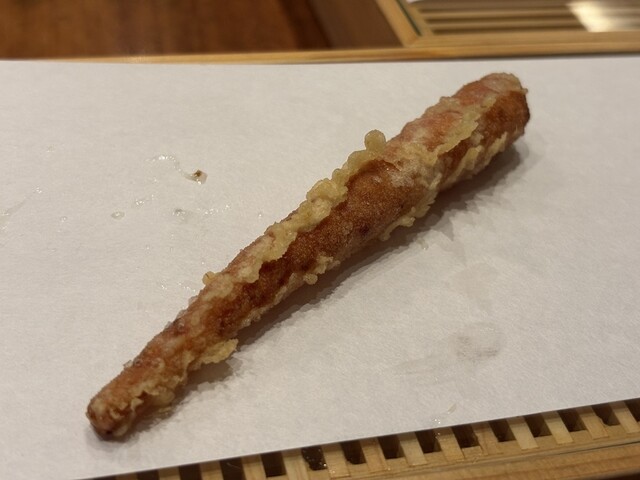 穂先、芯、根と、それぞれ異なる食感が楽しめます。部位ごとの火入れの違いに、職人技を感じます。