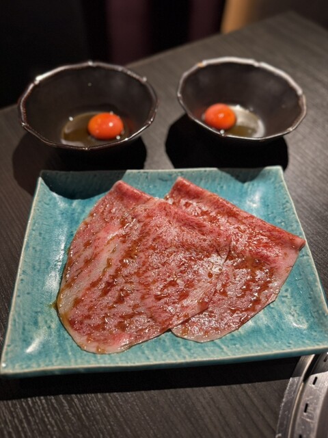 味噌ダレに真っ赤卵という濃厚な黄身が乗った和牛ユッケと、