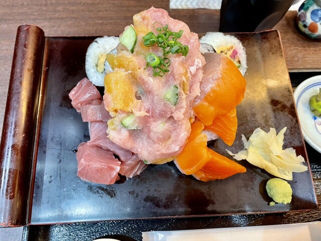 マグロとトロたくとサーモンのっけ寿司定食1100円を注文!メニューがやたら長い!!