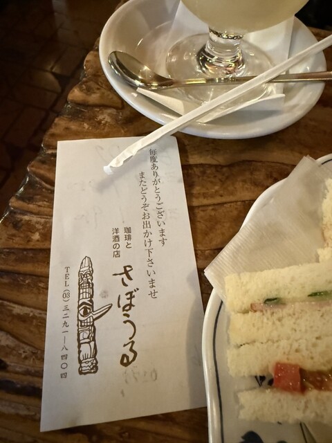久々に来ました、味の喫茶屋さぼうる。遅い時間のランチでもと思いましたが、流石の人気店、たいへん賑わっております。店内ノスタルジックな雰囲気、テーブルや椅子も大分年季が入ってそうです。目にする全てがレトロ感満載ですが、BGMがパンクロックで、なかなか斬新ですね。こちらのコーヒーがとても好きなのですが、これだけ暑いと冷たいものが飲みたくなりまして、こちらも懐かしのミルクセーキと、ミックスサンドを注文しました。こういう雰囲気のあるお店は注文を待っている間も退屈しませんね。昭和感があって、その時代にタイムスリップしてしまったかのよう。そして運ばれてきたミルクセーキとミックスサンド、こちらもしっかり昭和感あるビジュアルです。ミルクセーキにはバニラアイスもトッピングされていて、優しい甘さに癒されます。ミックスサンドは3種類でトマト、ハムキュウリ、玉子サンド、こちらも優しいお味なので、卓上にある塩を振りかけて自分好みの濃さに調整します。どちらのメニューも懐かしくも美味しいのは、またさぼうるの雰囲気があるからさらにそう感じられるのだと思います。もっとゆっくりできたらコーヒーもいただくのですが、今日は十分に満足させていただきました。ごちそうさまでした。