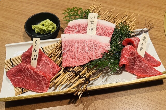 赤身3点盛りは王道の希少部位の赤身肉で、こちらもわさびとの相性が抜群でした。