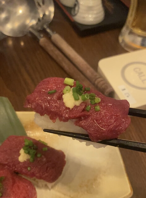 続く肉寿司は、しっとりと柔らかい赤身がシャリとふわっと合わさり、ひと口サイズながら満足度はしっかり。炙りの香りがふわっと広がるタイプもあり、焼きしゃぶとはまた違う楽しさがあるのが嬉しいところです。ついもう一貫…と手が伸びてしまいますね(・∀・)