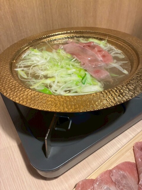 このお店の名物は、なんといっても5秒ですくい揚げる生たん葱しゃぶしゃぶ。さっと出汁にくぐらせるだけで、牛たんの旨みと葱の香りが一気に広がり、驚くほどやわらかい食感に仕上がります。火を入れすぎないからこそ味わえる、生たんならではのジューシーさがたまりません。(^ω^)