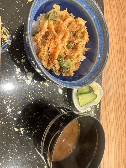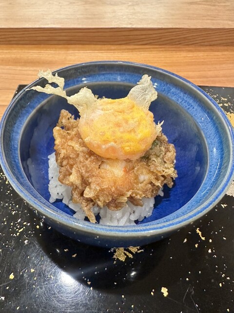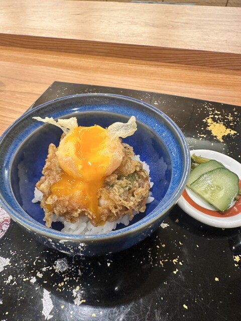 天丼は大盛りにしてもらいましたよ。笑 さらに卵黄の天ぷらも乗せてもらいました!