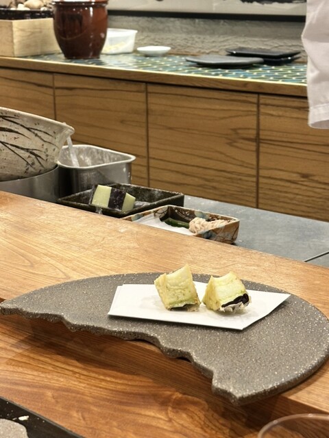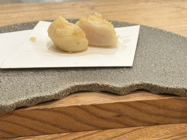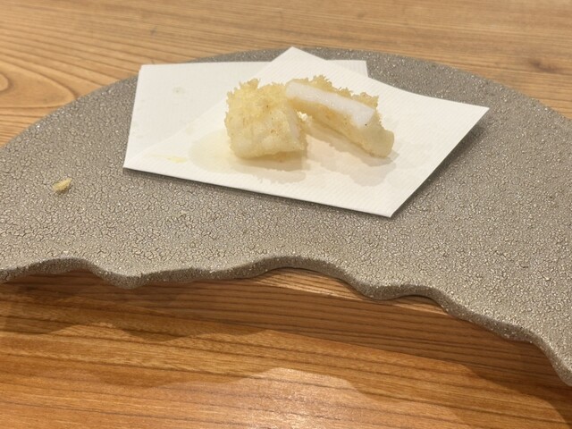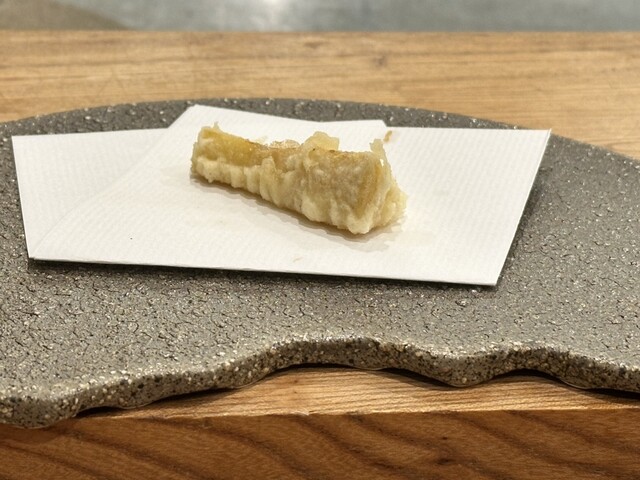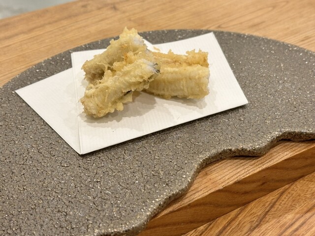 あなごも生きた穴子さんを見せてくれて、すぐに天ぷらに。アツアツ!サクッとふわっふわです。