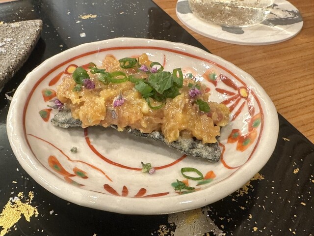 なめろうの大葉揚げか、海苔の天ぷらなめろうのせを食べてください。飛びます。(事前に食べたいと言うと用意してくださるそうですよ)
