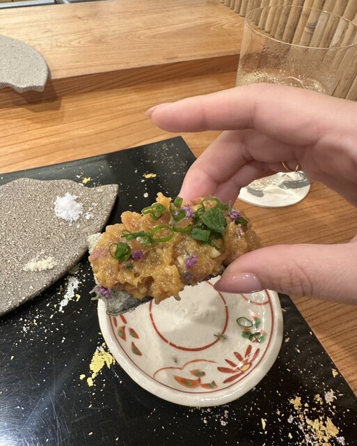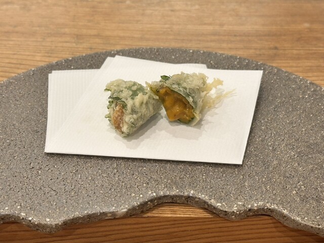 大葉の香りとウニの甘みが広がって贅沢で幸せな気持ちになります。