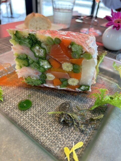 スタートの前菜から美味しくて思わず唸ってしまいました。全てのお皿が、魚介と野菜とお肉を工夫を凝らして調理されており、色彩の美しさ、味付け共に素晴らしい。