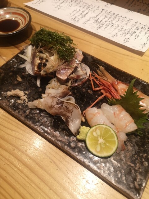 まずは、御造りをお好みでボタン海老、トリガイ、やいとがつおを注文した。北海道のボタン海老と丹後のトリガイを博多で味わうというなんとも贅沢な組み合わせにやいとがつおも鮮度抜群だった。どれも見事にひと手間が施されていて市場や鮮魚店から直に仕入れただけの味ではなかった。