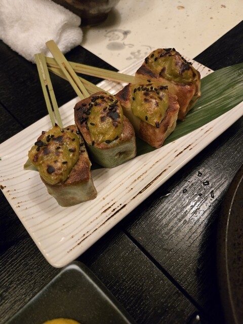 スタッフさんによると特別なピーマンではなく、大将自らがスライスをされているとのこと。生で食べるという発想だけでなく、素人には真似のできない丹精込めたひと皿であり、ピーマンのみずみずしさの残る口から始まる、揚げ物、お造り、焼き物の良さが引き立つのだと後々理解できた。