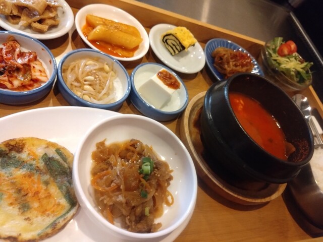 チヂミもとても美味しかったです 小皿や小鉢に入っているお料理の量がちょうど良くて いろんな味が楽しめて最高すぎました
