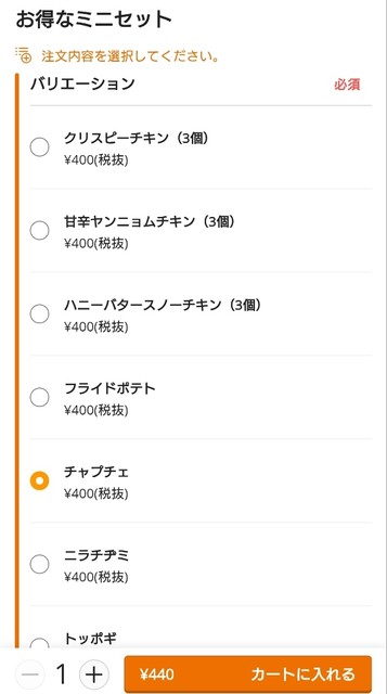 こちらの定食で、チキン3つだけとか少量を