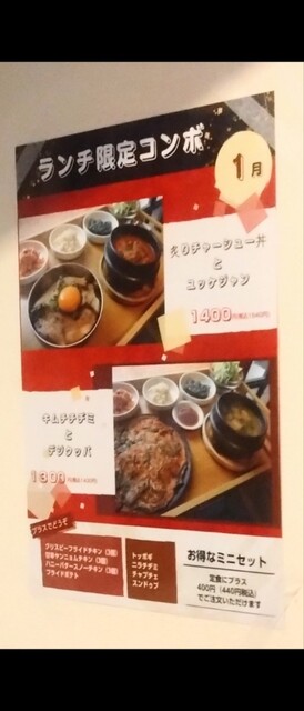 パリパリもちもちのイカの海鮮チヂミと熱々チゲセット 税込 1320円 木曜日 マッコリ 110円