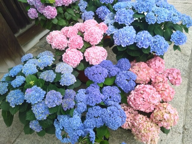 これは長谷寺の紫陽花です 鉢植えのあじさいは咲いていますが お寺に自生している 紫陽花はまだ二分咲きといったところです
