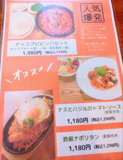 ホットペッパーから予約して行きました。地元のマダム、20代から70代くらいまでのマダムの方でほぼ満席(*´ω`*)目の前に 野球場が広がって開放感のある眺め。可愛らしいイタリアン&韓国料理のお店です。