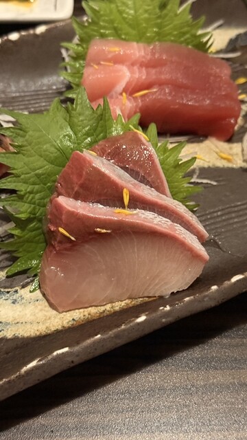 お刺身が5点盛りでマグロ、サーモン、サバ、カツオ、ブリが綺麗に盛り付けられ、どれも脂がのって新鮮で美味しかった☺️