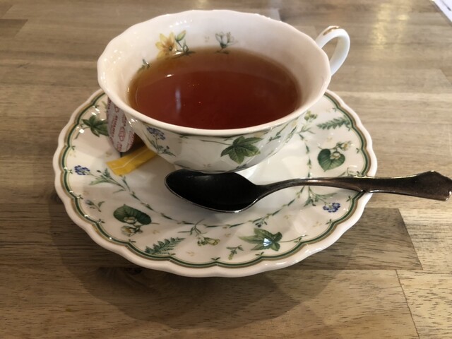 あらかじめティーカップに注がれており、スティック砂糖とミルクが添えられています。