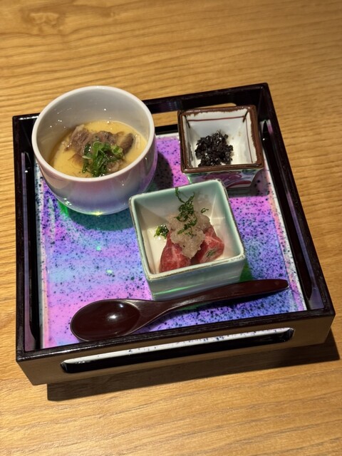 霜降り肉の先付もとても美味しい